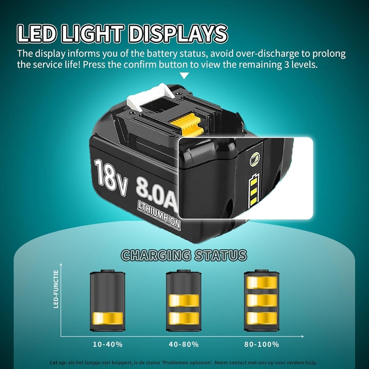 8.0Ah 18V Ersatzakku für makita mit LED Ladeanzeige