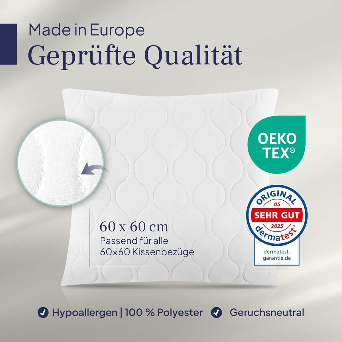 - Die im Set enthaltenen 2 Kissen haben Bezüge und Füllungen aus 100% Polyester – Unsere Ökotex-Zertifizierten Kissen mit Füllung werden in Europa unter Einhaltung höchster Hygiene- und Produktionsstandards produziert.