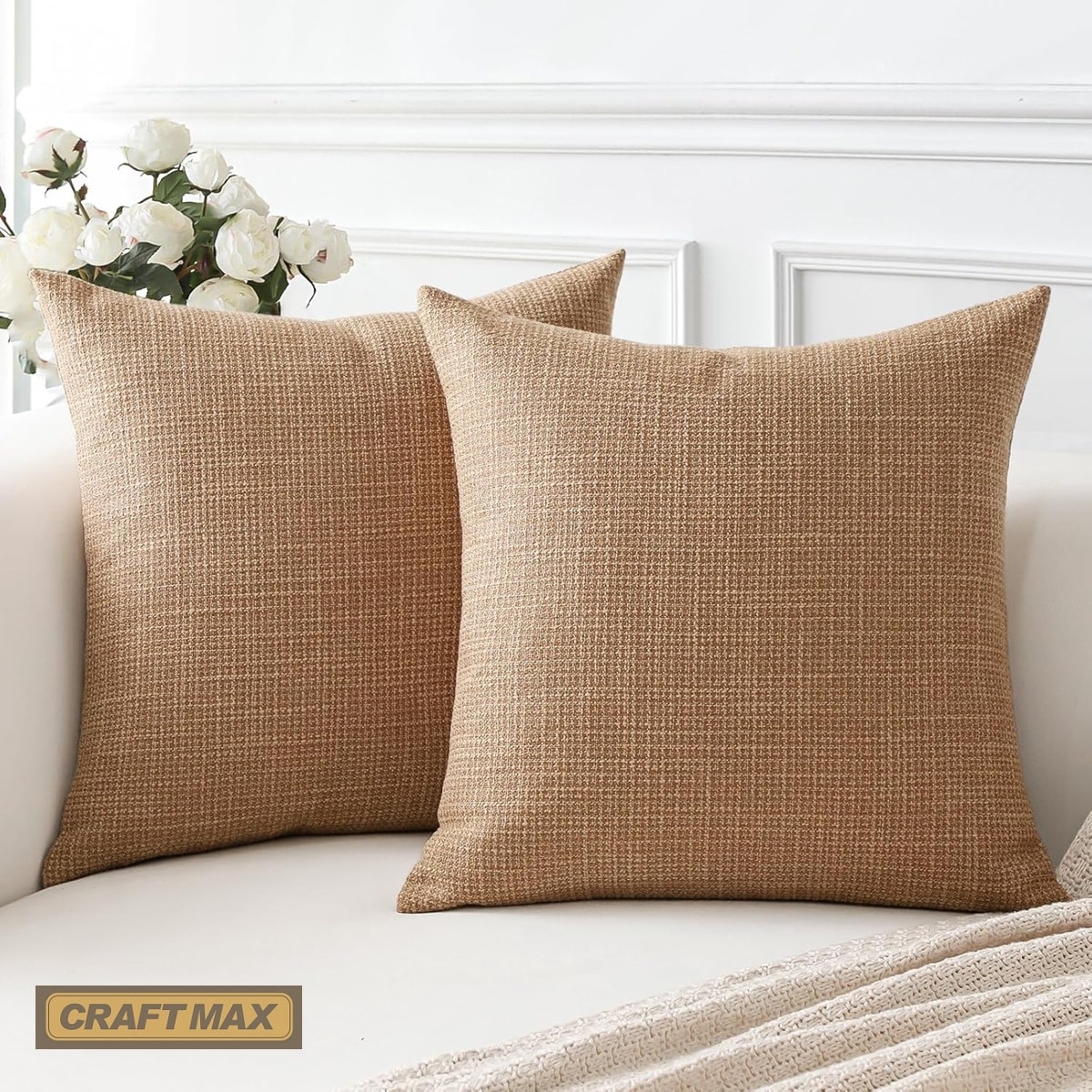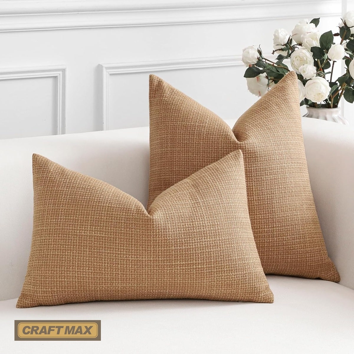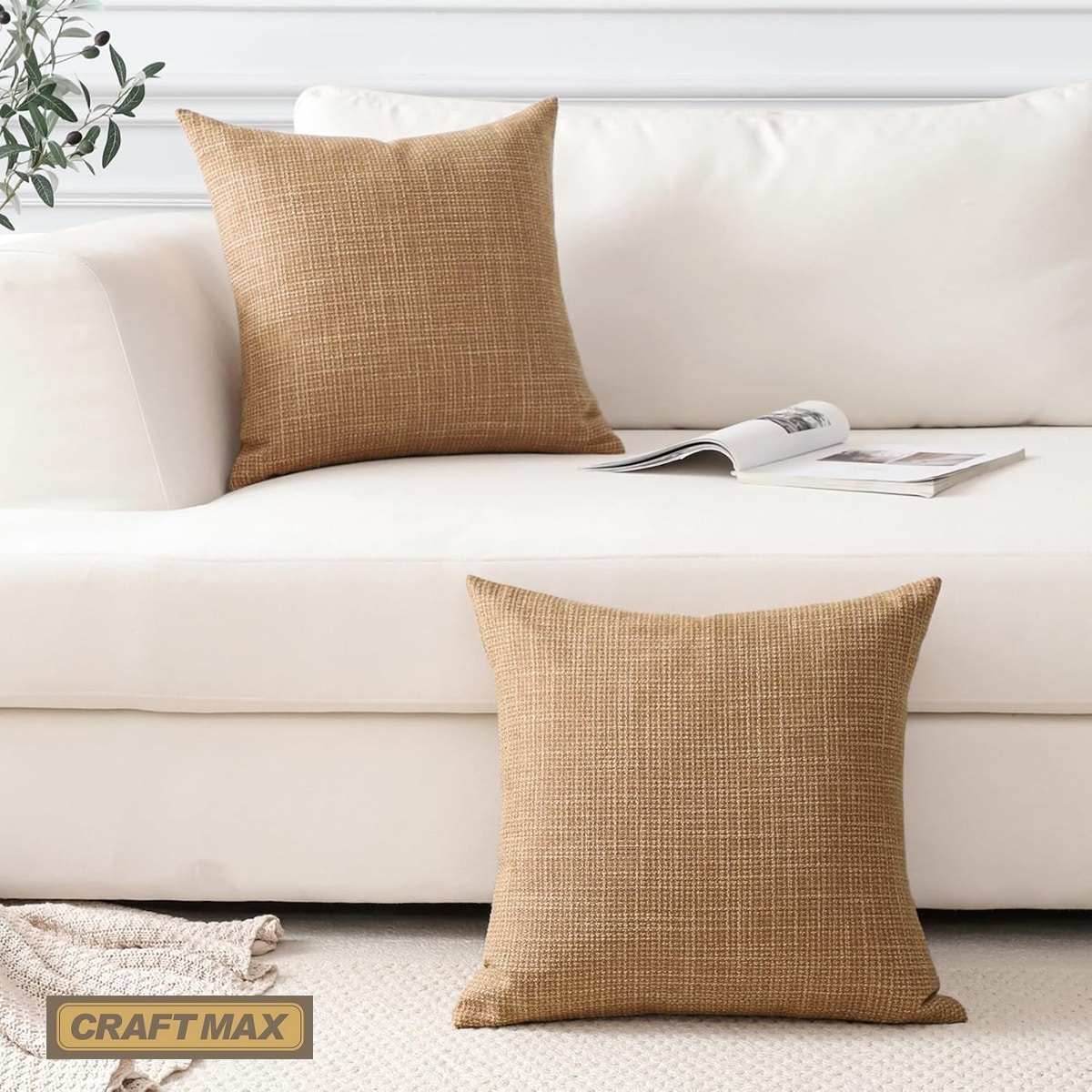 CRAFTMAX® babyluzi® Baby-Absperrkissen, als Baby Krabbel Barriere im Innenbereich, robustes Leinen Kissen, zum Absperren von Gefahrenquellen am Boden, Türen und Treppen – 2er-Set