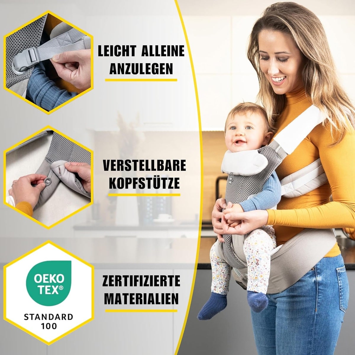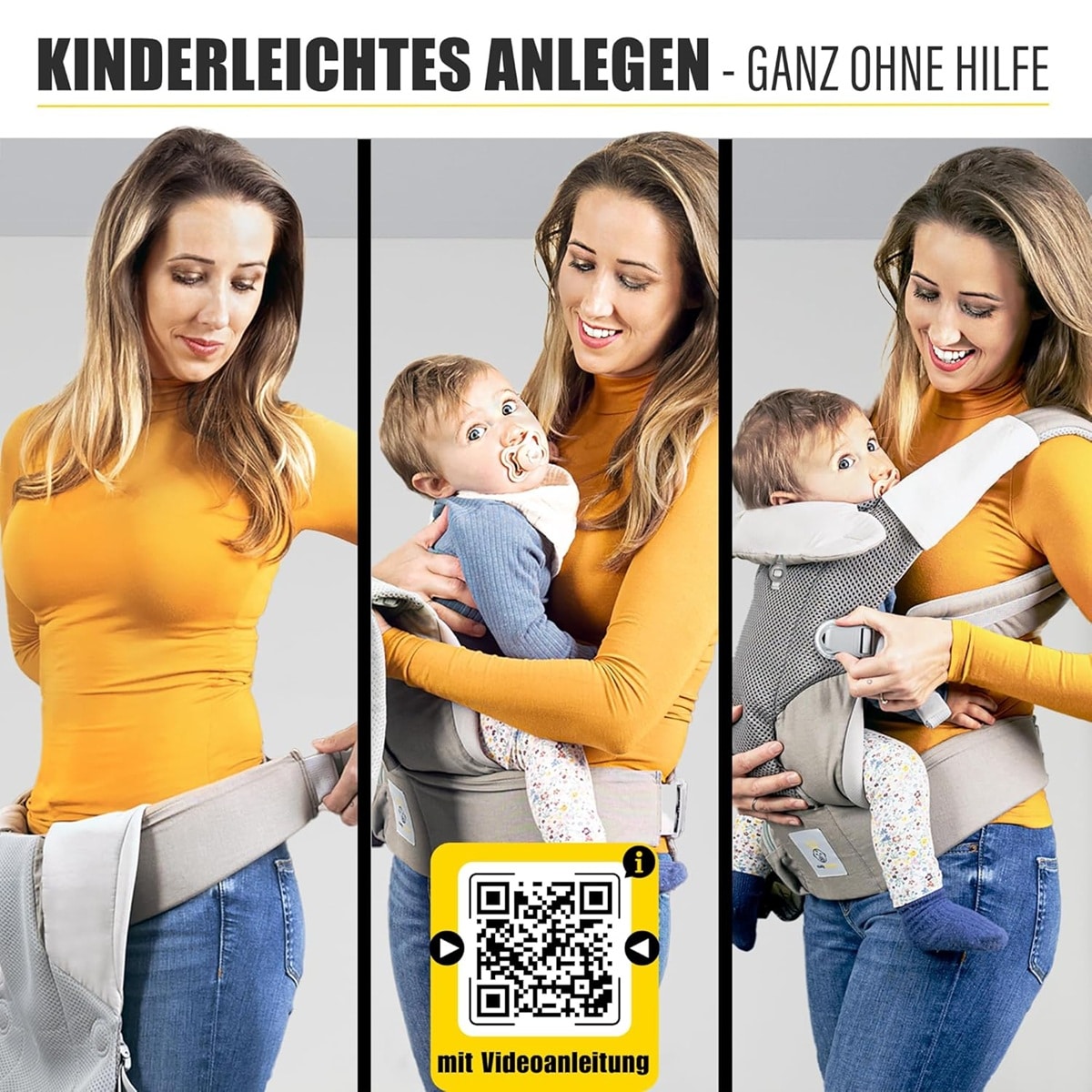 Komfortabler, patentierter Hüftsitz für Baby (von 0 – 36 Monaten)