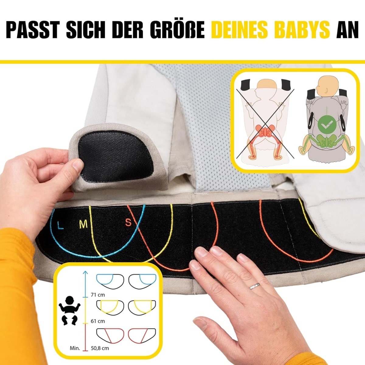- INDIVIDUELLE HÜFTVERSTELLUNG FÜR DEIN KIND – Fördert eine gesunde Entwicklung von Wirbelsäule und Hüftgelenken und gewährleistet die Einhaltung der M-Spreiz-Haltung für Ihr Kleinkind in jedem Alter. Damit begleitet die Trage Baby beim Wachsen und sorgt für den perfekten Hüftsitz.