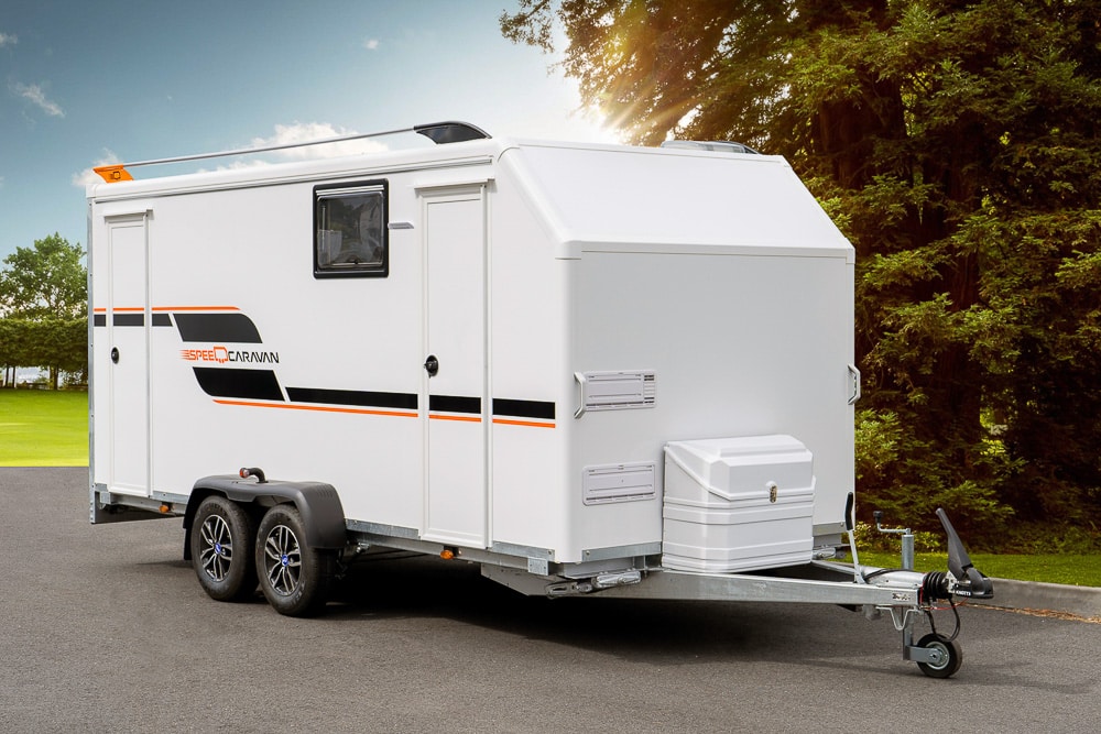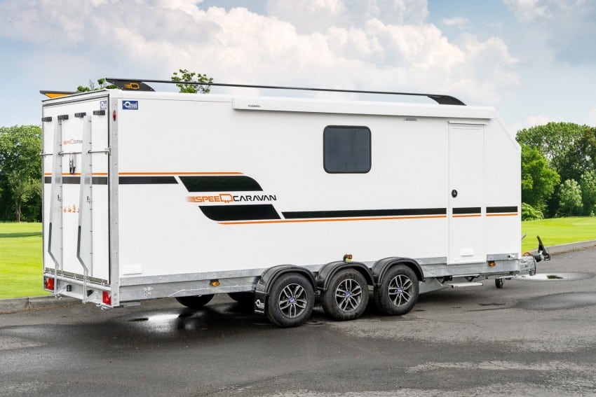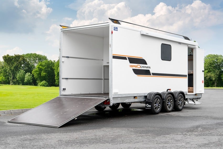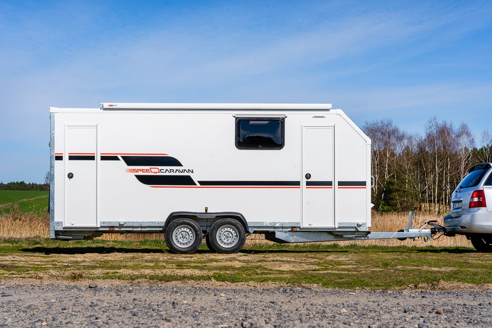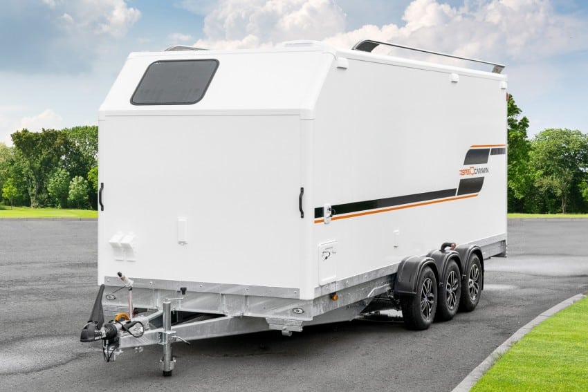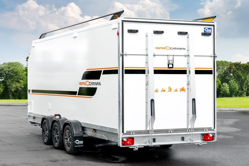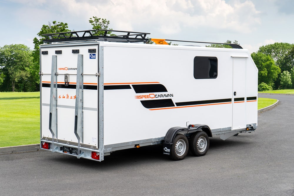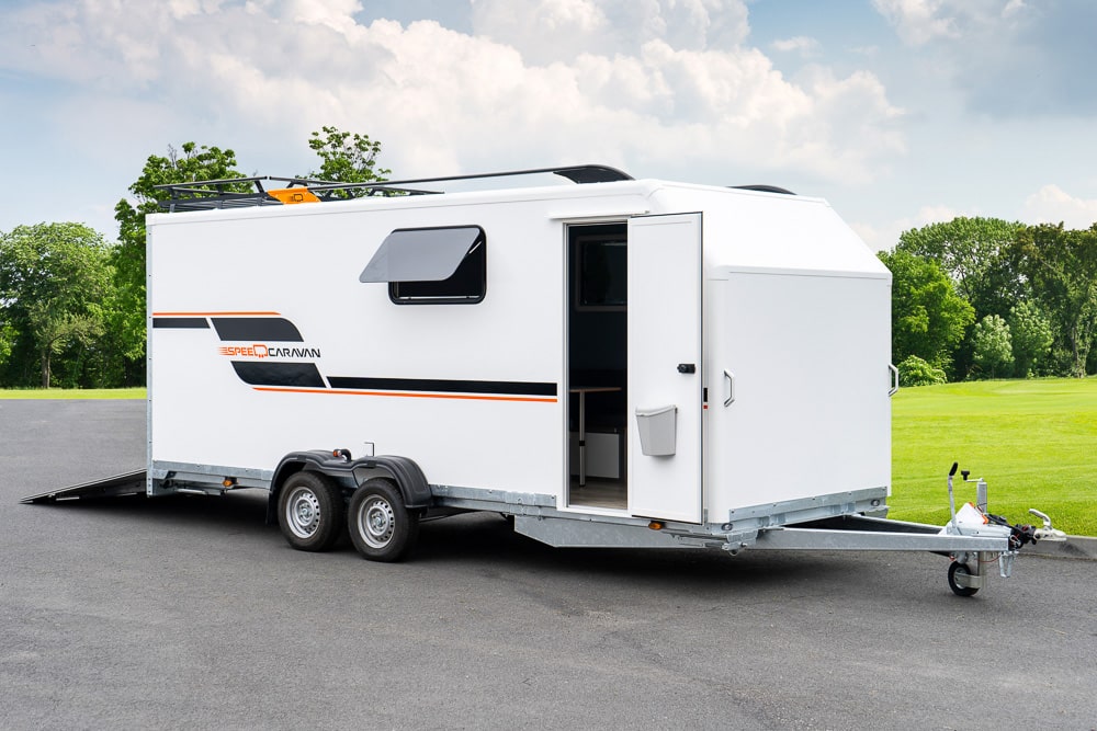 CRAFTMAX® SPEEDCARAVAN® 2700 Tandem Thermo-Sandwich Koffer mit Seitentür, Fenster, Bett, Küche, separater Sanitärbereich mit Toilette, Ladebordwand und weiteren Optionen…
