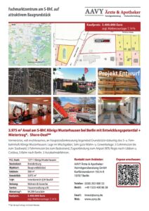 Zukünftig wird der Standort überdurchschnittlich von der Entwicklung in der Stadt, der Verkehrsanbindung, dem nahen Hauptstadtflughafen und der Nähe zu Berlin profitieren. Besonders verkehrsgünstige Lage am Bus-/ S- & Regional/Fernbahnhof, nur 1 Haltestelle bis zum Airport BER. 3 Autobahnanschlüsse, Binnenhafen, naher Eisenbahnanschluss für Gütertransport. Innerhalb der Stadt an frequentierter Hauptstraße, Stadtwald und Freibad in wenigen Gehminuten erreichbar, sehr gute Infrastruktur, Krankenhaus, Schulen, Gymnasium, Einkaufzentren, Technologiepark, 25 Fahrminuten bis Berlin / Airport, Shuttle-Bus Verbindung zum TESLA Werk.