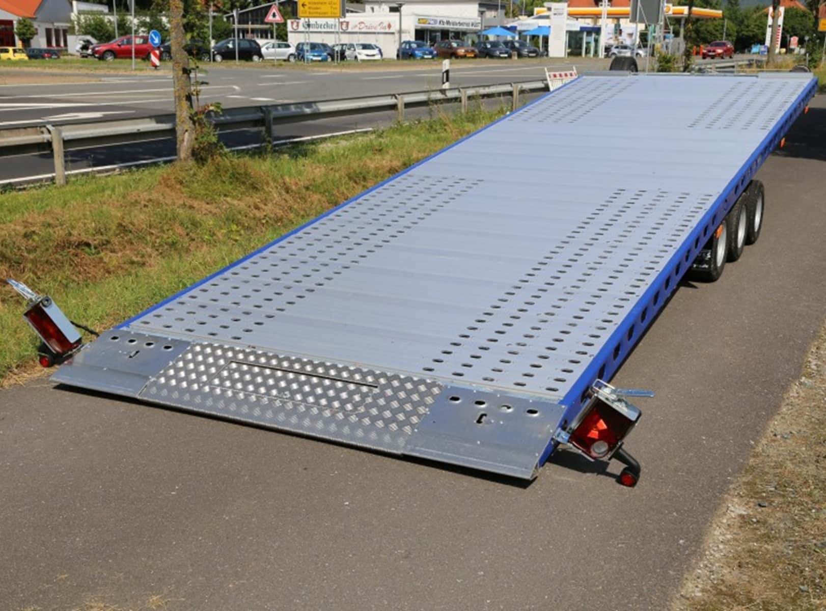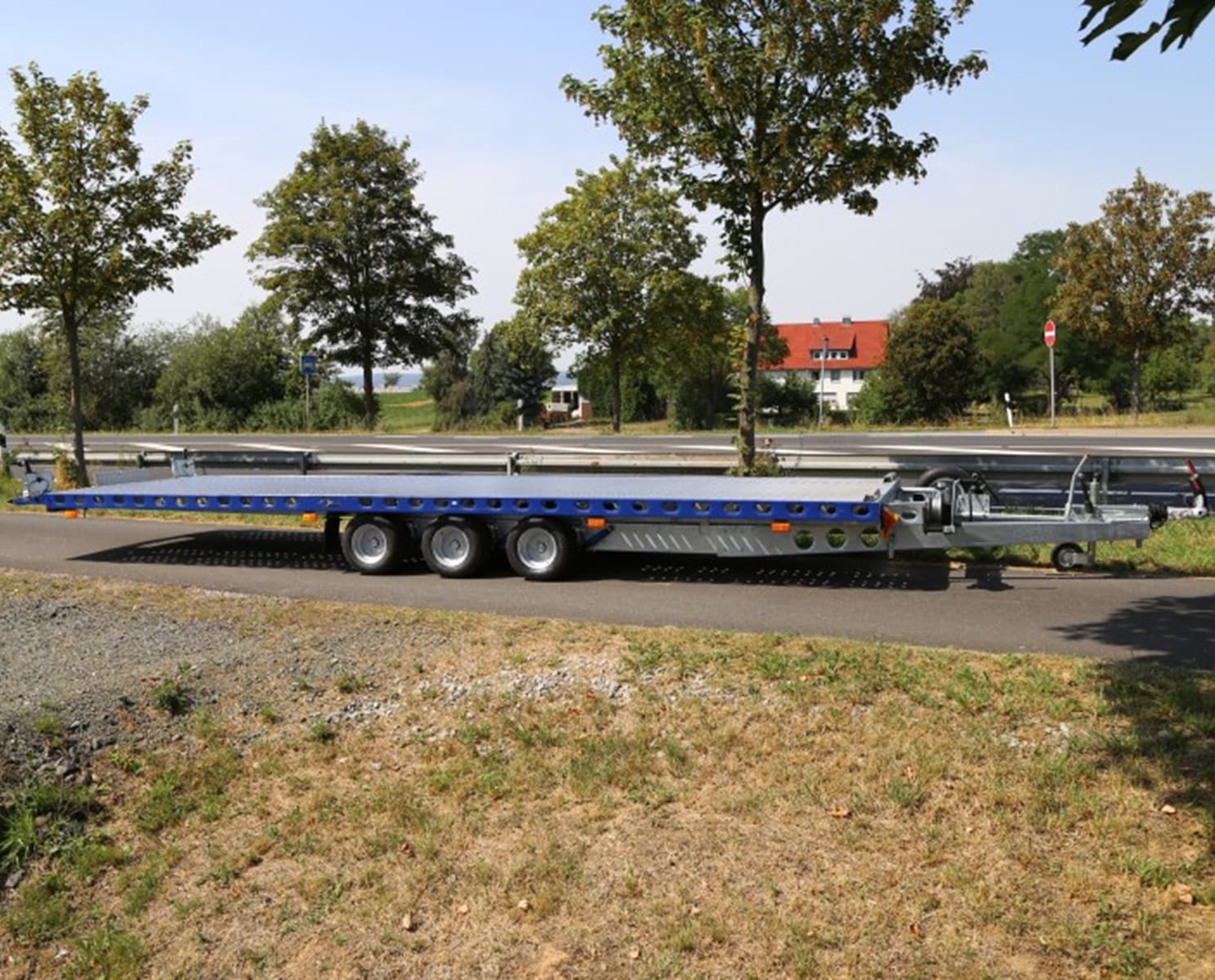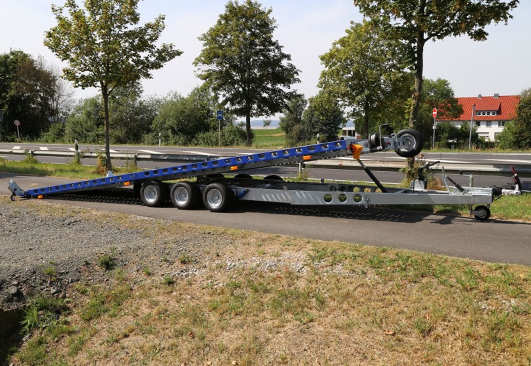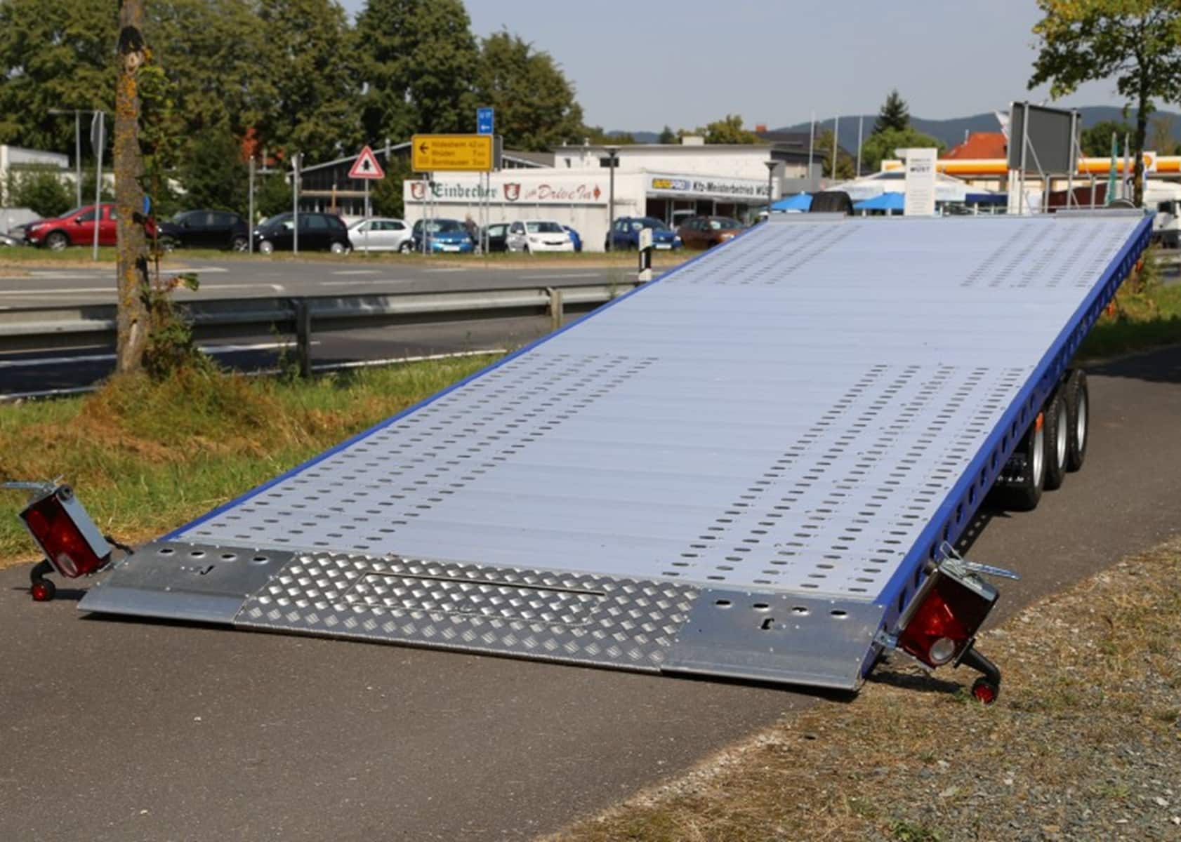 Durch die Ladeflächenlänge und einer langen Zugdeichsel können sowohl große heck- als auch frontlastige Fahrzeuge transportiert werden.