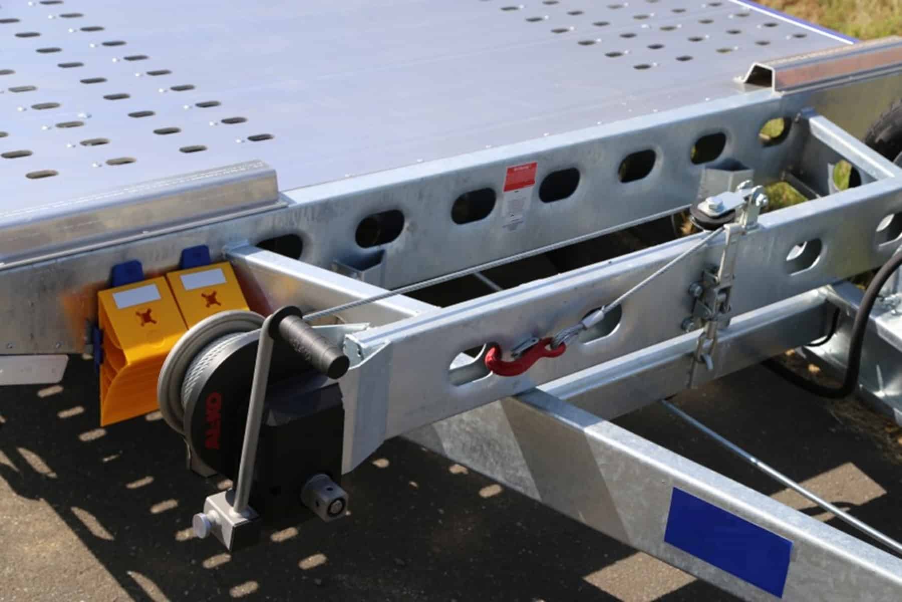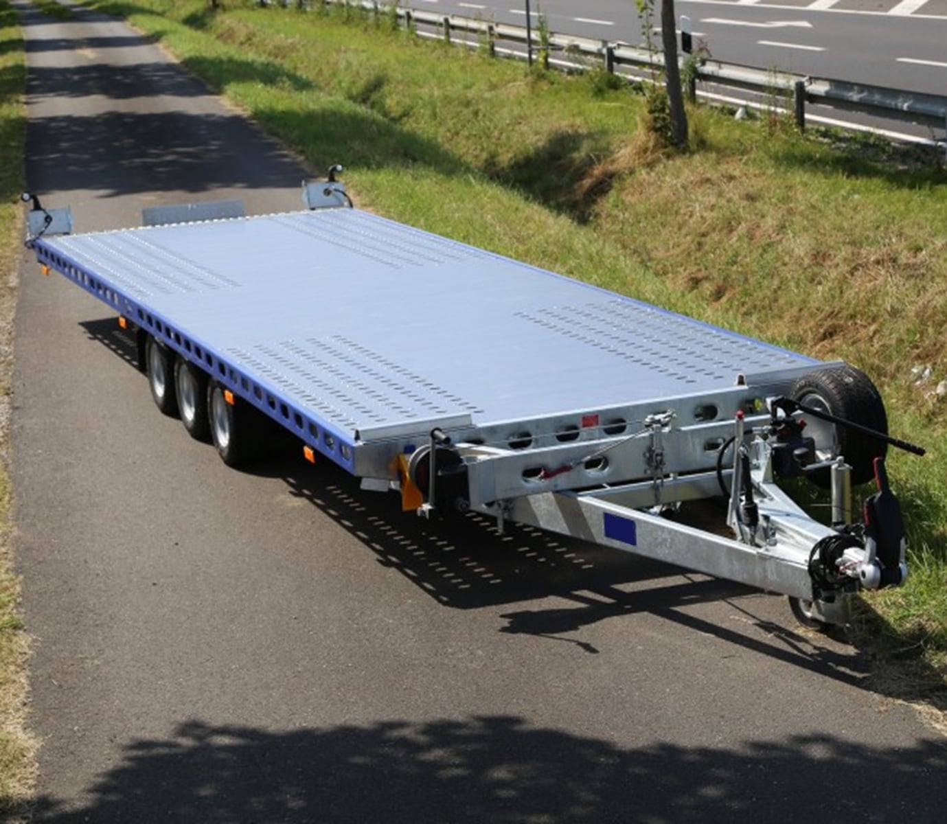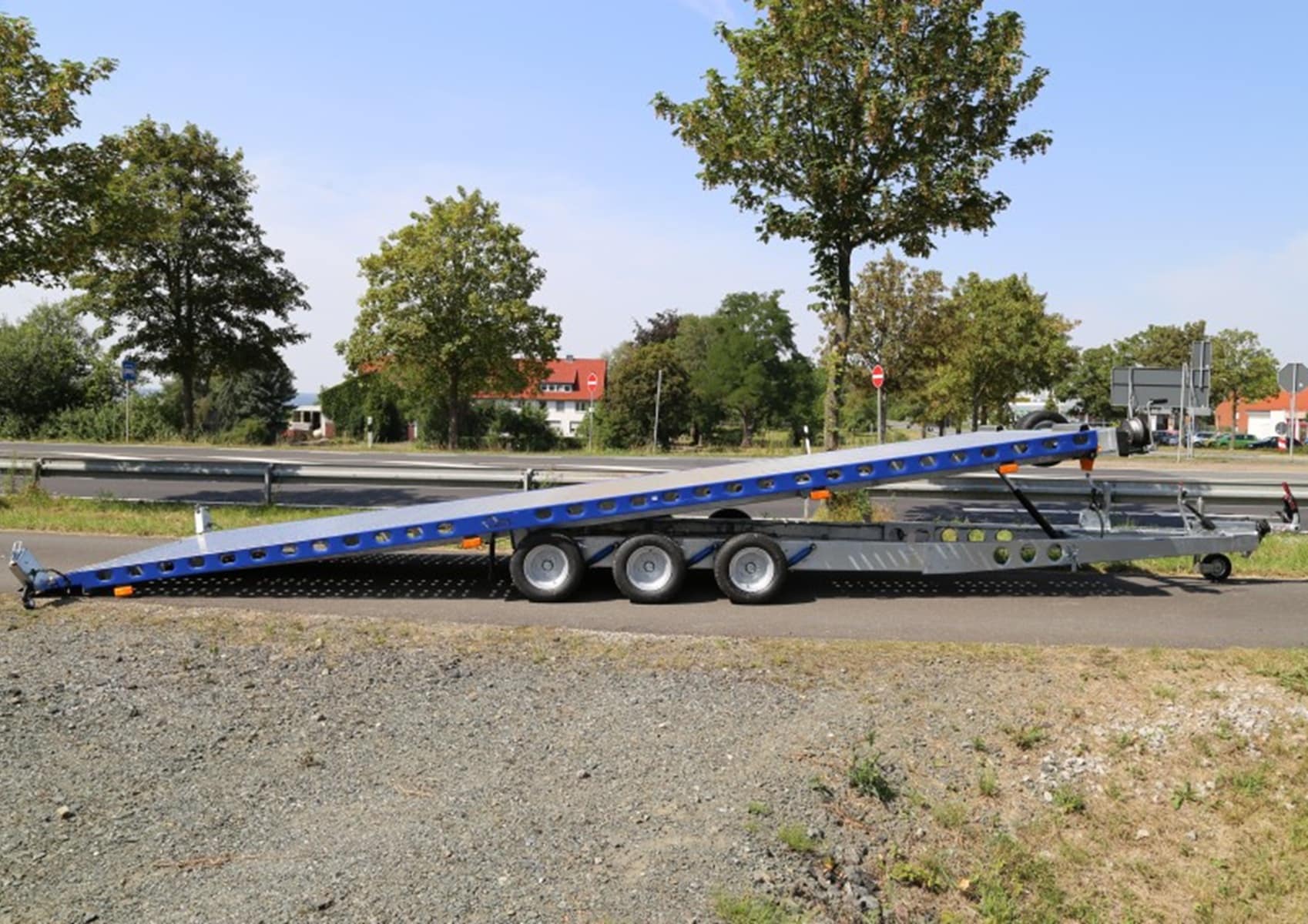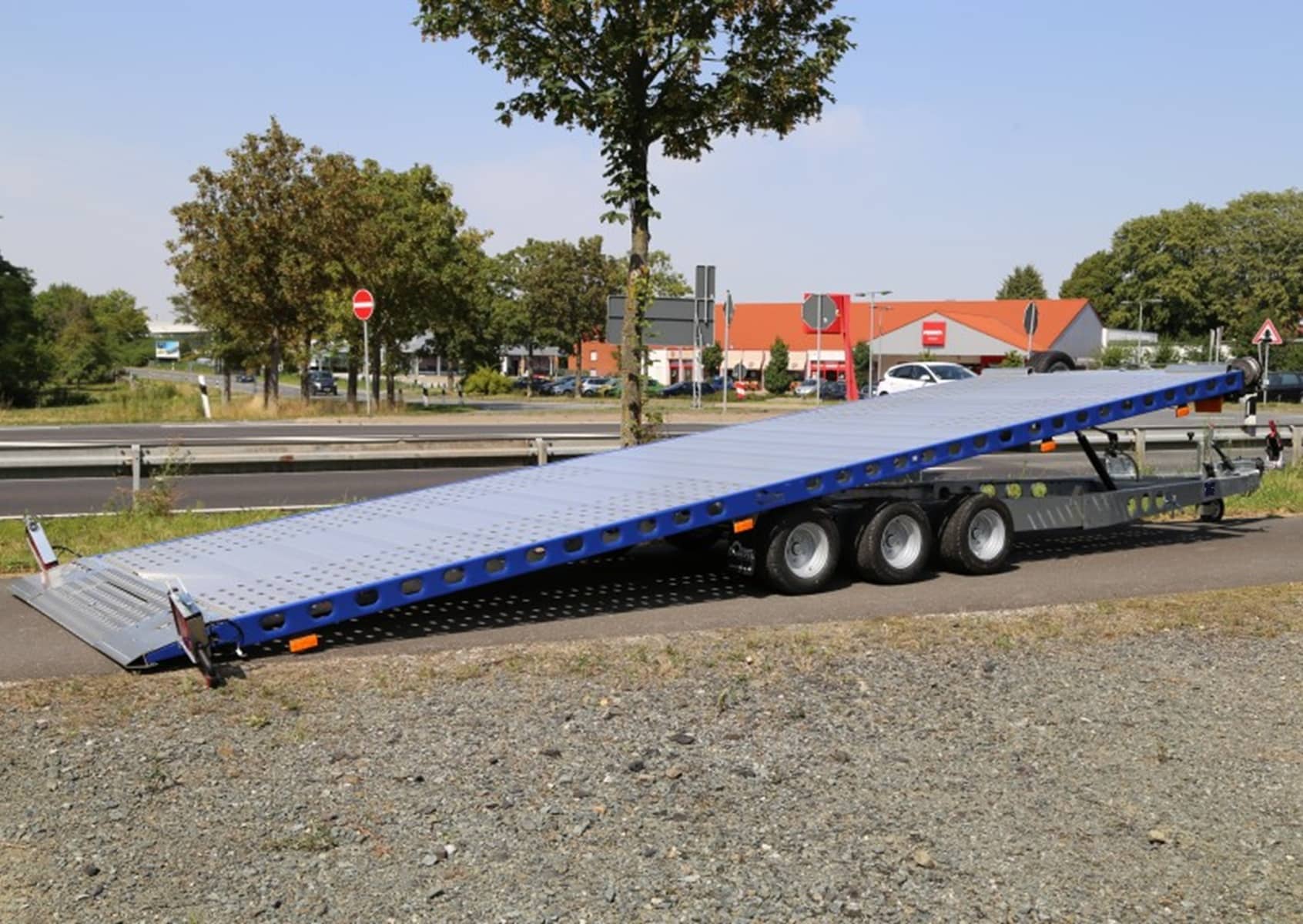 Durch die Ladeflächenlänge und einer langen Zugdeichsel können sowohl große heck- als auch frontlastige Fahrzeuge transportiert werden.