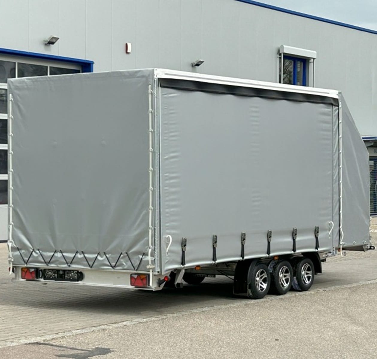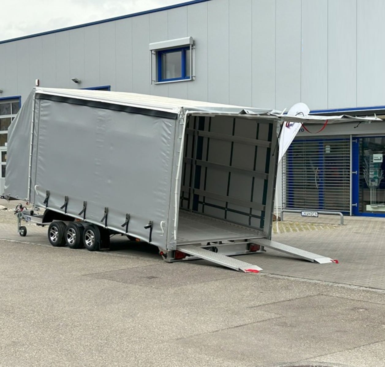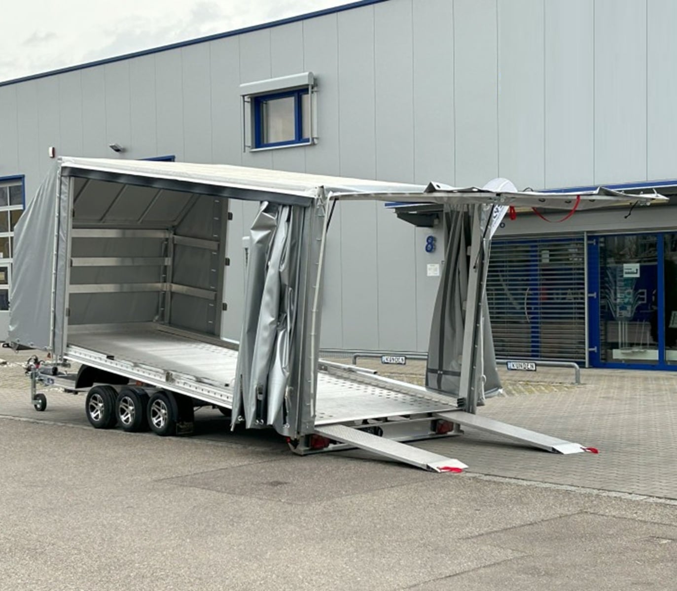 CRAFTMAXĀ® SILVERSTONEĀ® 3500 Diamantline Tridem Alurahmen komplett kippbar, Alupaneel-Boden, Seilwinde, Aluauffahrschienen, LED, Hochplane h=2.00 m (ab Boden) – 100 km/h