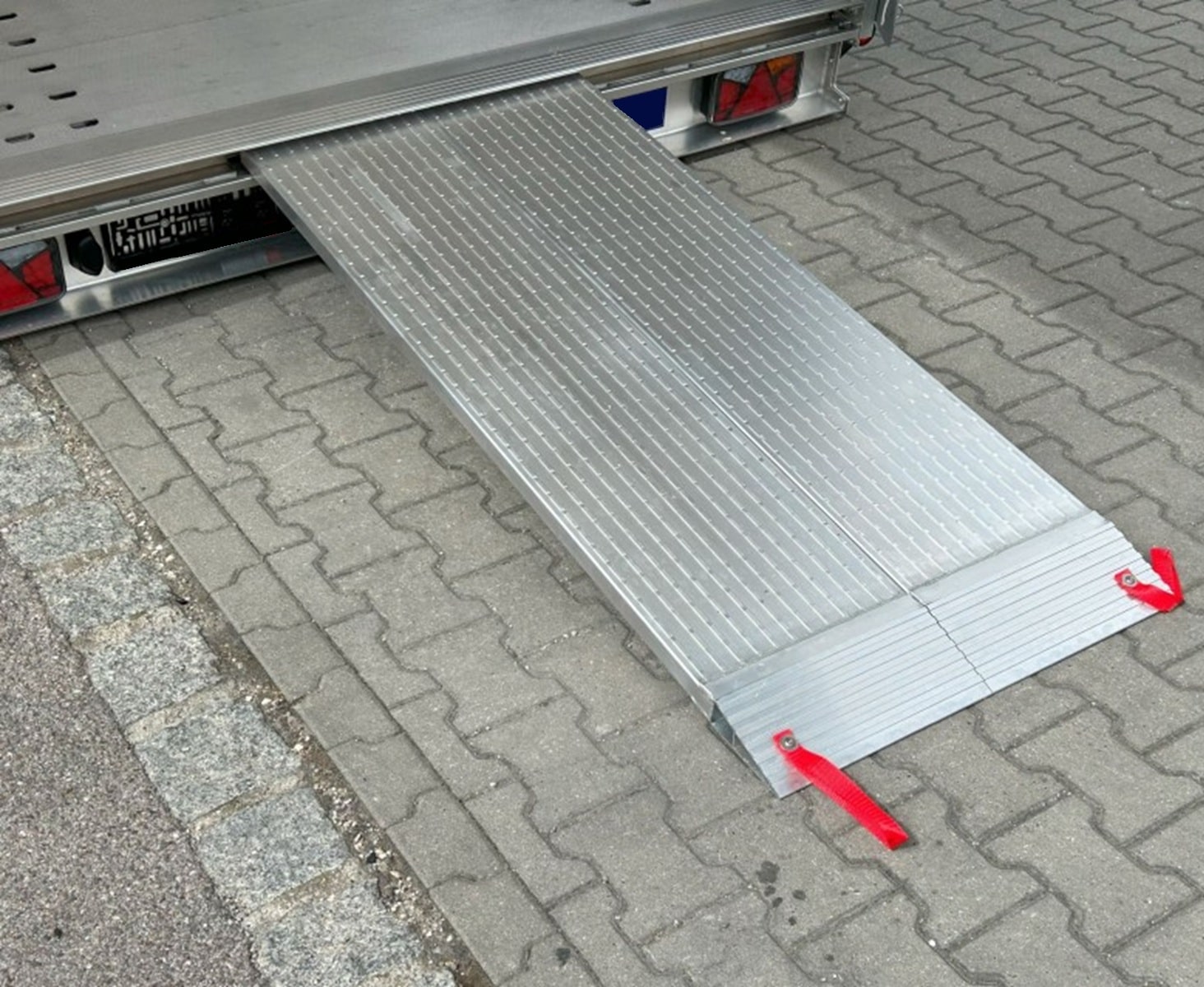 Durch die LadeflƤchenlƤnge und einer langen Zugdeichsel kƶnnen sowohl groĆe heck- als auch frontlastige Fahrzeuge transportiert werden.