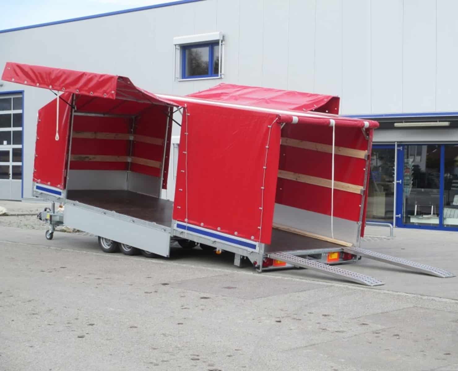 - Planengestell mit Hochplane und Spriegel, vorn abgeschrägt, verschiedene Farben wählbar