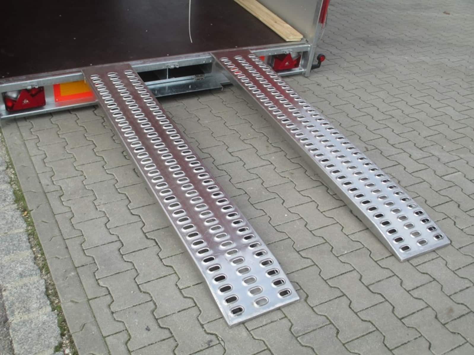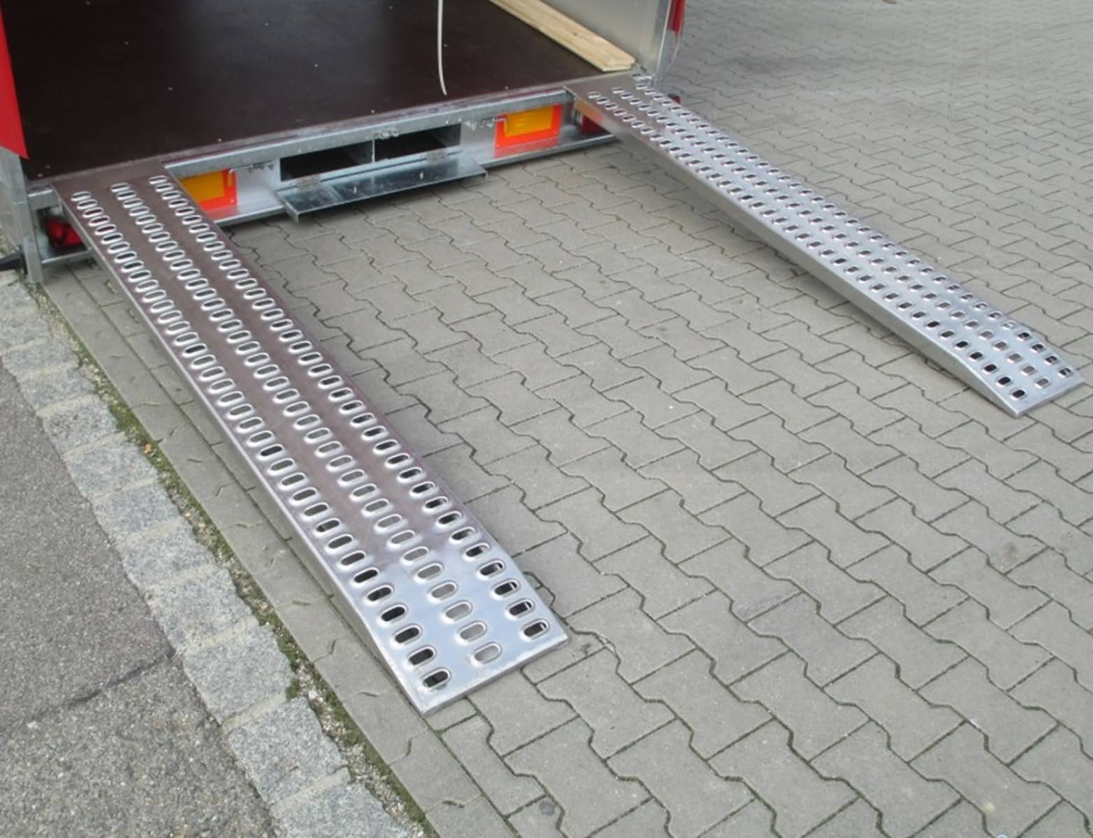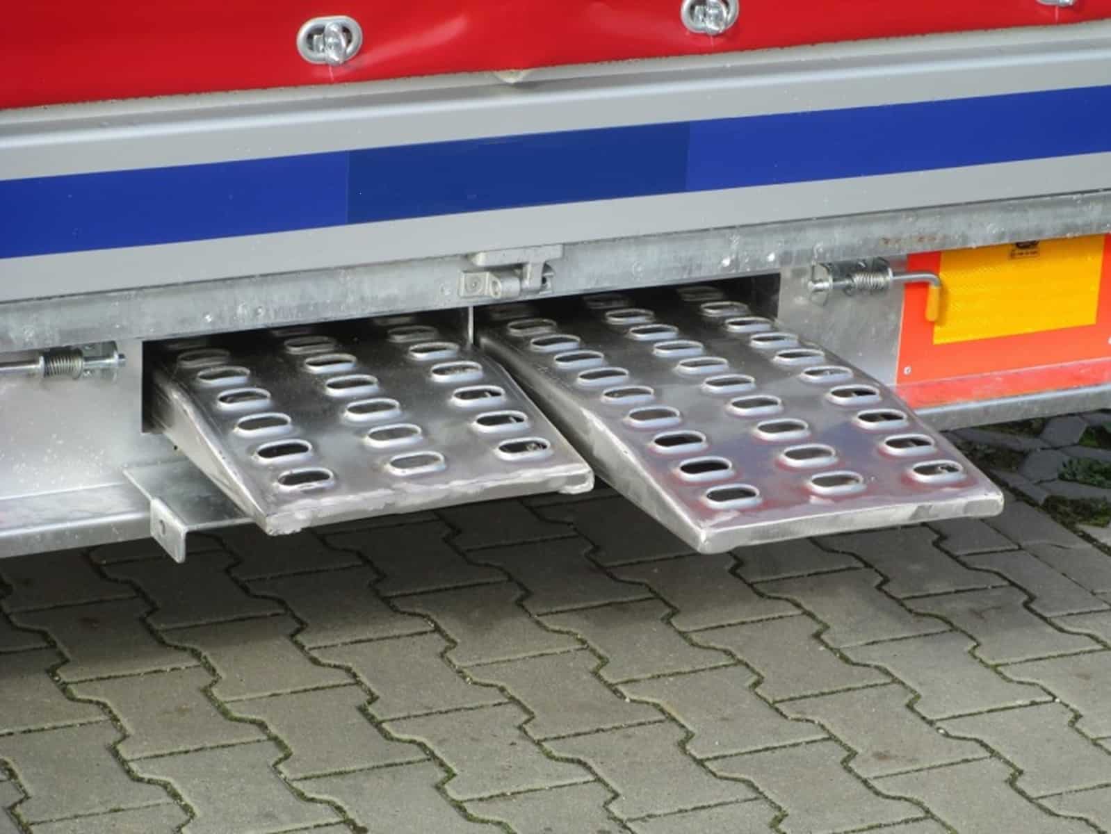 Die Auffahrschienen sind unter der Ladefläche eingeschoben und werden entriegelt, einfach nach hinten ziehen und auffahren.