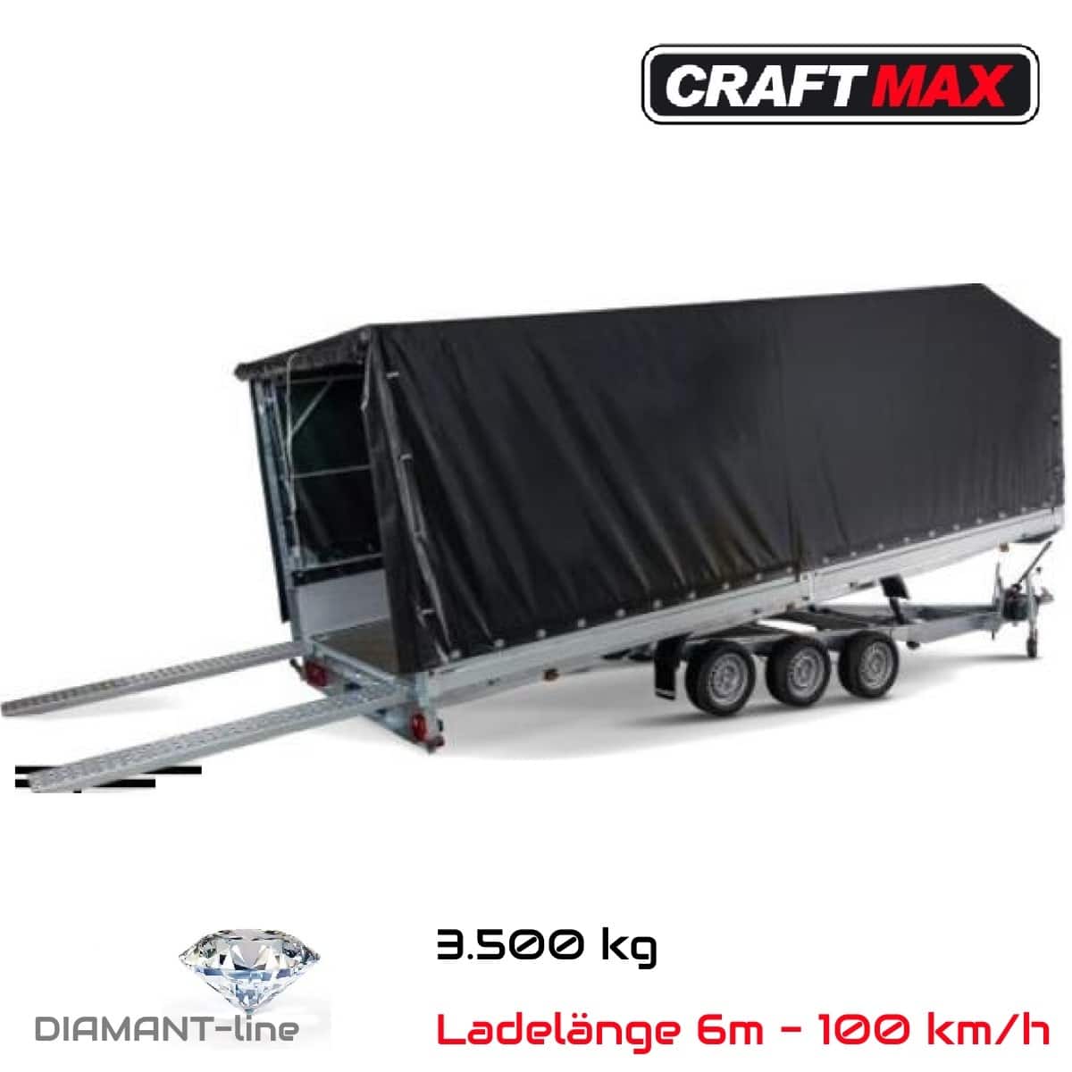 CRAFTMAX® TransFlash® Diamantline 3500 Tridem Fahrzeugtransporter hydraulisch kippbar mit ALU-Bordwand und Hochplane h=2.00 m (ab Boden)