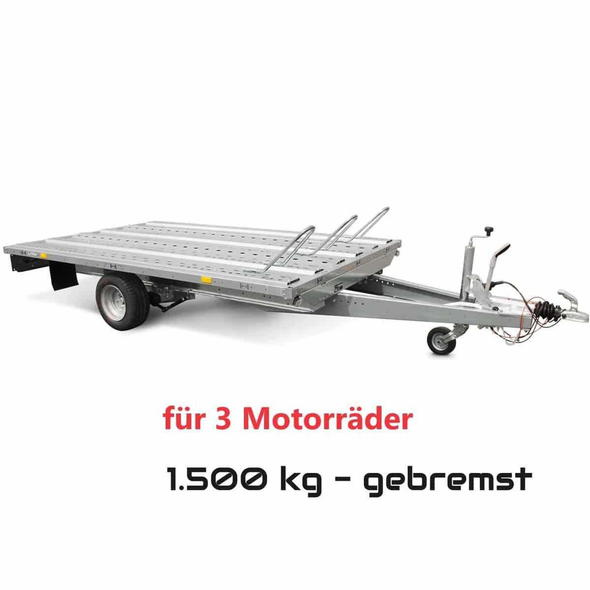 STEMA® SySTEMA® MT 1500 Motorradtransporter für 3 Motorräder inkl. Rampe und montierter Gleitschiene